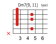 m7 9 11(マイナーセブンスナインスイレブンス)のギターコード一覧