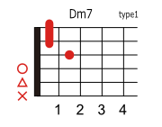 マイナーセブンスコードとは、短三和音(ルート、短3度、完全5度)に短7度の音を加えた構成の四和音です。