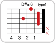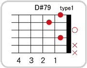 ルートがD#(E♭)のギターコード一覧表(左利き用)