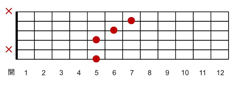 A,G,C♯(D♭),F♯(G♭),の構成音を含むギターコード